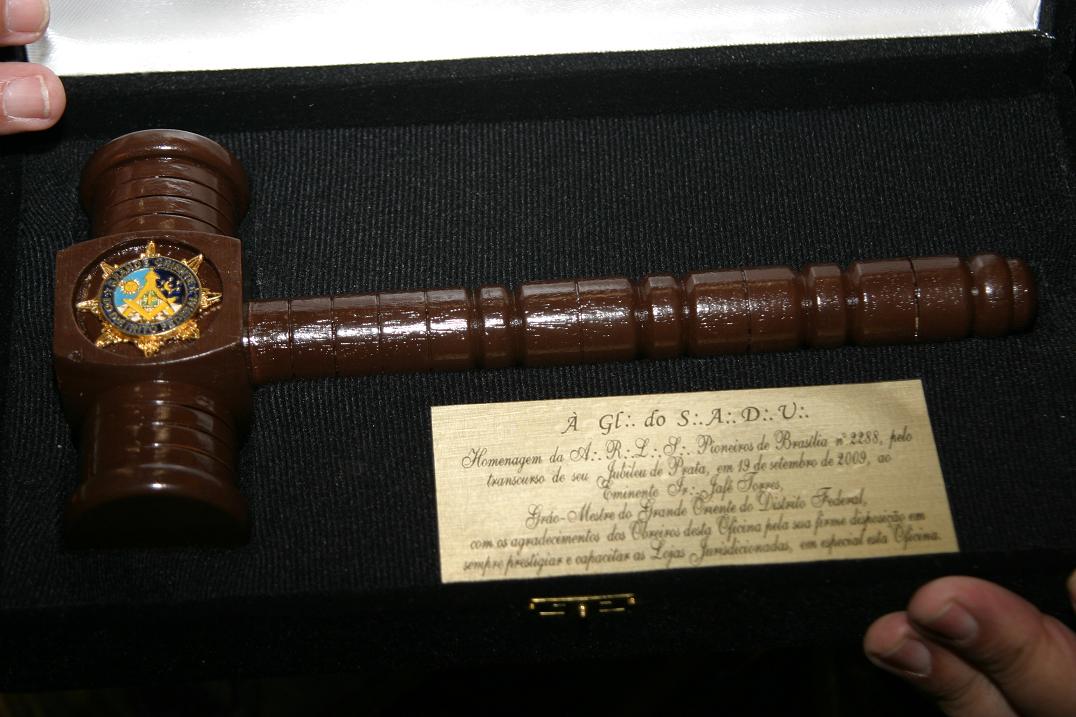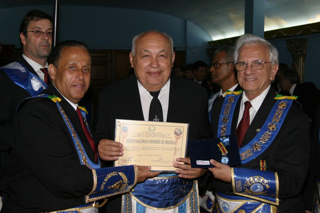 EM COMEMORAÇÃO AO 25º ANIVERSÁRIO DE FUNDAÇÃO DA LOJA MAÇÔNICA PIONEIROS DE BRASÍLIA Nº 2288 FOI REALIZADO NO DIA 19 DE SETEMBRO DE 2009 UMA SESSÃO MAGNA NO TEMPLO DA LOJA ATALAIA DE BRASÍLIA . NESTA SESSÃO TIVEMOS O PRAZER DE CONTAR COM AS PRESENÇAS DO SOBERANO IRMÃO MARCOS JOSÉ DA SILVA,GRÃO MESTRE GERAL DO GRANDE ORIENTE DO BRASIL,DO EMINENTE IRMÃO JAFÉ TORRES, GRÃO MESTRE DO GRANDE ORIENTE DO DISTRITO FEDERAL,DO PODEROSO IRMÃO FRANCISCO LUCAS GALDEANO, GRÃO MESTRE ADJUNTO DO GRANDE ORIENTE DO DISTRITO FEDERAL, DO EMINENTE IRMÃO MANOEL TAVARES, SANTOS,PRESIDENTE DA ASSEMBLÉIA LEGISLATIVA DISTRITAL,IRMÃOS FUNDADORES,EX VENERÁVEIS,VÁRIOS IRMÃOS DE LOJAS DO DF E TRINTA E QUATRO IRMÃOS DO QUADRO.NA OCASIÃO FOI ENTREGUE A MEDALHA MÉRITO MAÇÔNICO "PIONEIROS DE BRASÍLIA" AS VÁRIAS AUTORIDADES E IRMÃOS CONVIDADOS,A COMENDA D PEDRO I AO IRMÃO ANTONIO CARLOS SIMÕES E O TÍTULO DE BENEMÉRITO DA ORDEM AO IRMÃO ANTONIO AUGUSTO PESSOA DE ALMEIDA.A SEGUIR AS FOTOS DO IRMÃO GETULIO GURGEL BARBOSA QUE RETRATAM ESTE EVENTO: