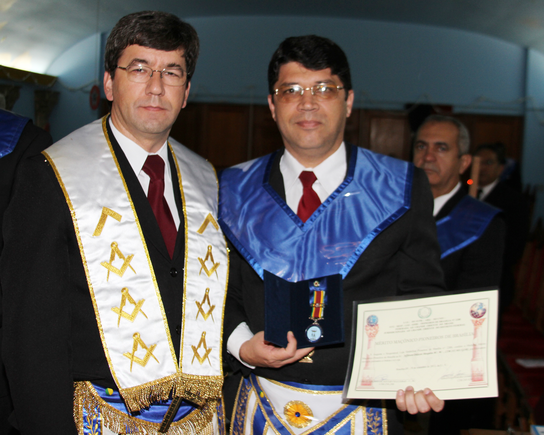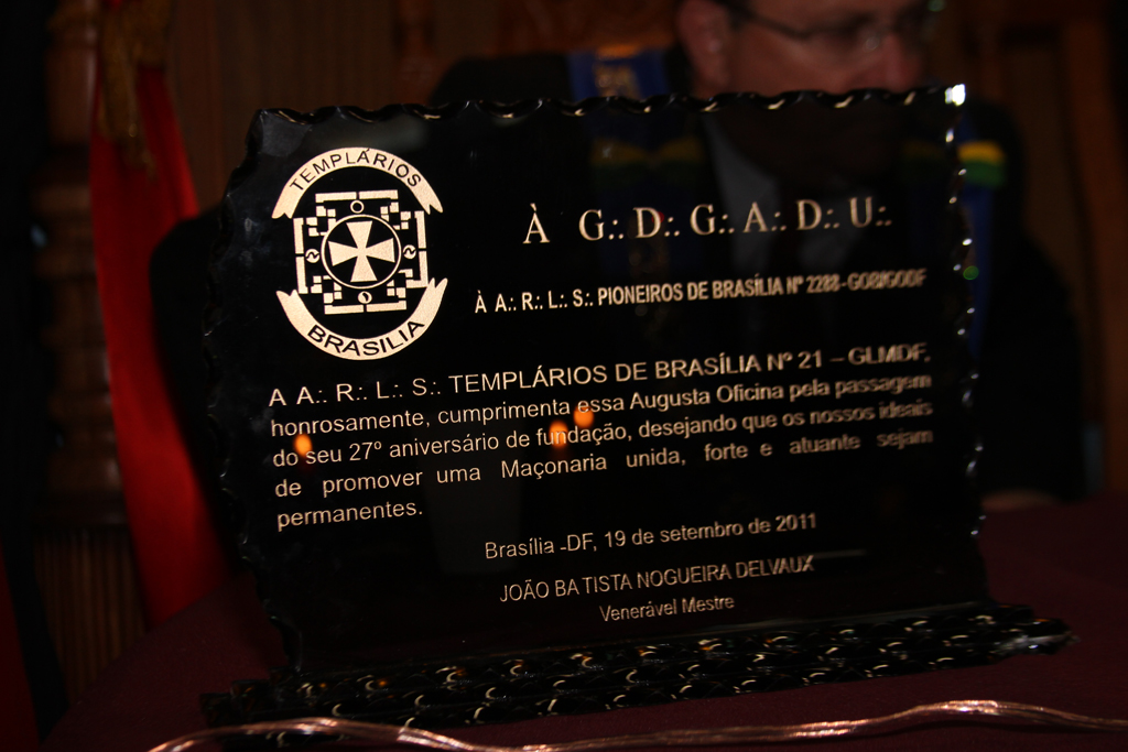 EM COMEMORAÇÃO AO 27º ANIVERSÁRIO DE FUNDAÇÃO DA LOJA MAÇÔNICA PIONEIROS DE BRASÍLIA Nº 2288 FOI REALIZADO NO DIA 19 DE SETEMBRO DE 2012 UMA SESSÃO MAGNA COM AS PRESENÇAS DE VÁRIOS IRMÃOS DE LOJAS DO RITO BRASILLEIRO E DE OUTROS RITOS E POTÊNCIAS.A SESSÃO FOI PRESIDIDA PELO VENERÁVEL MESTRE EM EXERCÍCIO IRMÃO CARLOS ALBERTO DE AGUIAR FILGUEIRAS